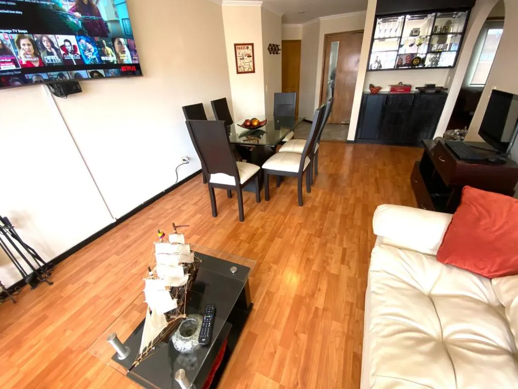 Excelente, piso alto, exterior, super iluminados, en muy buenas condiciones, gran sala comedor con chimenea, amplia cocina integra con comedor auxiliar, zona de lavandería independiente, dos amplias alcobas, dos baños, pisos en madera laminada, dos garajes y depósito, parqueo de visitas, salón social, gimnasio, estrato 5, AMOBLADO. Excelentes vías de acceso.